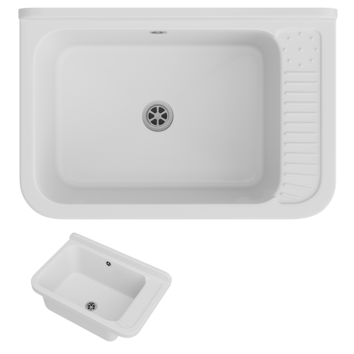 Zlew gospodarczy biały to klasyczne rozwiązanie, które sprawdzi się w każdej pralni, garażu czy kotłowni. Neutralny biały kolor pasuje do większości aranżacji i podkreśla estetykę pomieszczenia, zachowując jednocześnie pełną funkcjonalność zlewu roboczego.