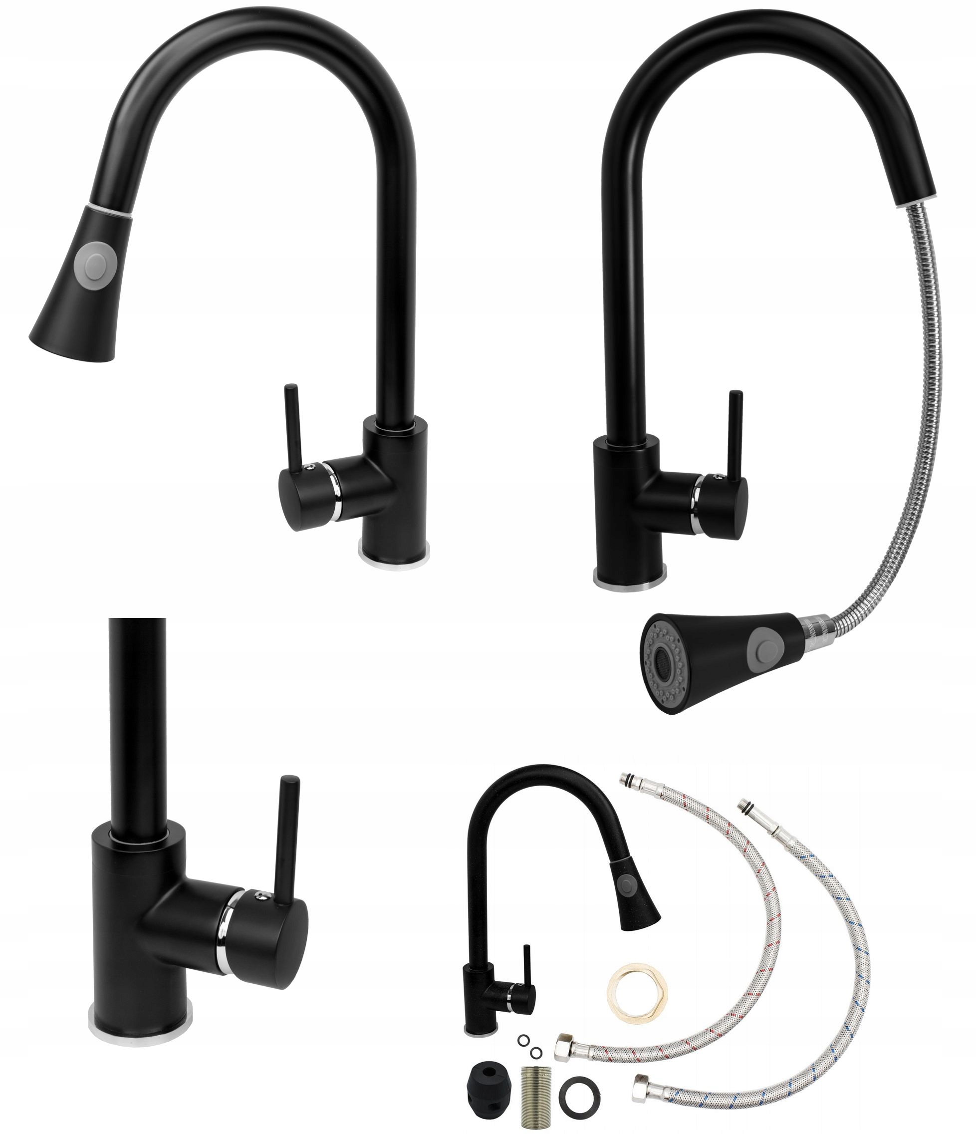 CZARNY ZLEW GOSPODARCZY KOMORA BATERIA Z WYCIĄGANĄ WYLEWKĄ ZESTAW PARON