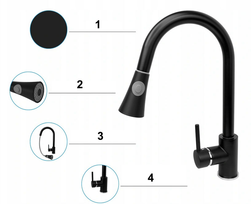 • Konstrukcja: obrotowa wylewka 360 stopni, wyciągana.