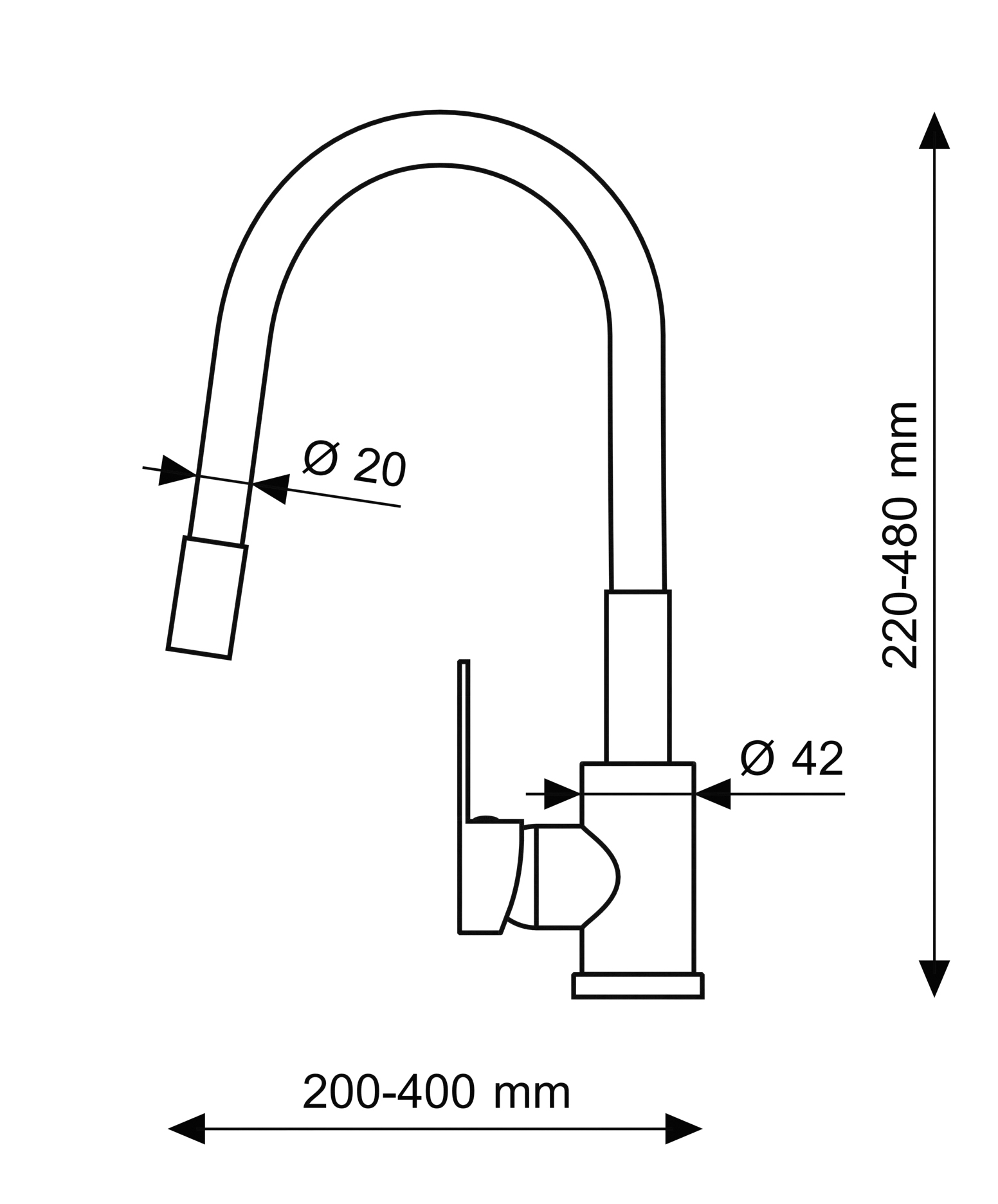 • Elastyczna wylewka baterii kuchennej z możliwością obrotu o 360 stopni.