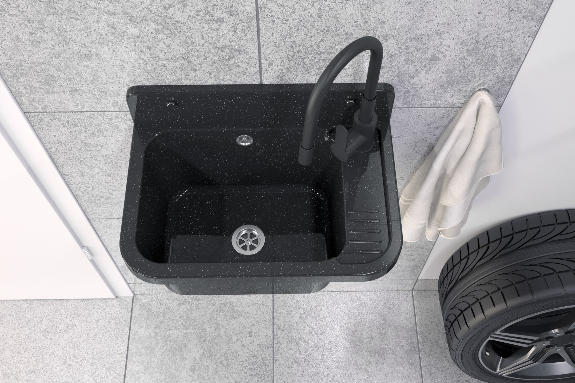 Cały zestaw – zlew gospodarczy, bateria kuchenną i syfon – został wykonany z najwyższą starannością, aby sprostać oczekiwaniom użytkowników. Polipropylen, z którego wykonano zlew, cechuje się nie tylko wysoką odpornością chemiczną, ale także brakiem absorpcji wody, co zapobiega ryzyku uszkodzenia materiału w trudnych warunkach. Bateria Grado, dzięki zastosowaniu ceramicznej głowicy i elastycznej konstrukcji, zapewnia niezawodność oraz komfort użytkowania na co dzień.