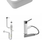 W skład zestawu wchodzą nie tylko zlew gospodarczy, ale także bateria z wyciąganą wylewką oraz syfon z dodatkowym wyjściem na pralkę lub zmywarkę. Wszystkie elementy dostarczane są wraz z niezbędnymi akcesoriami montażowymi, dzięki czemu proces instalacji jest niezwykle prosty i wygodny. Staranne wykonanie oraz uwagę poświęcono nawet najmniejszym szczegółom, aby sprostać oczekiwaniom najbardziej wymagających użytkowników.