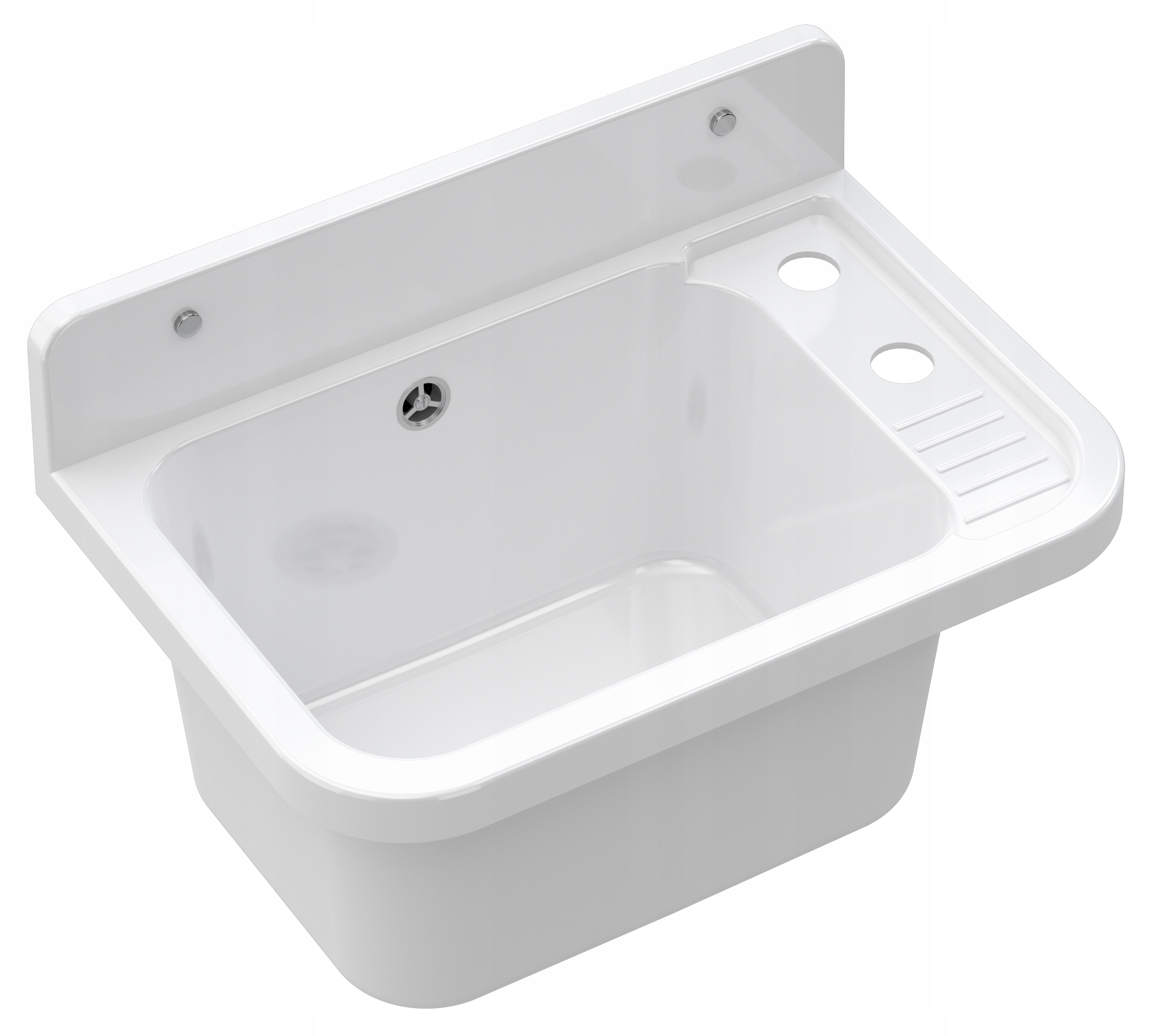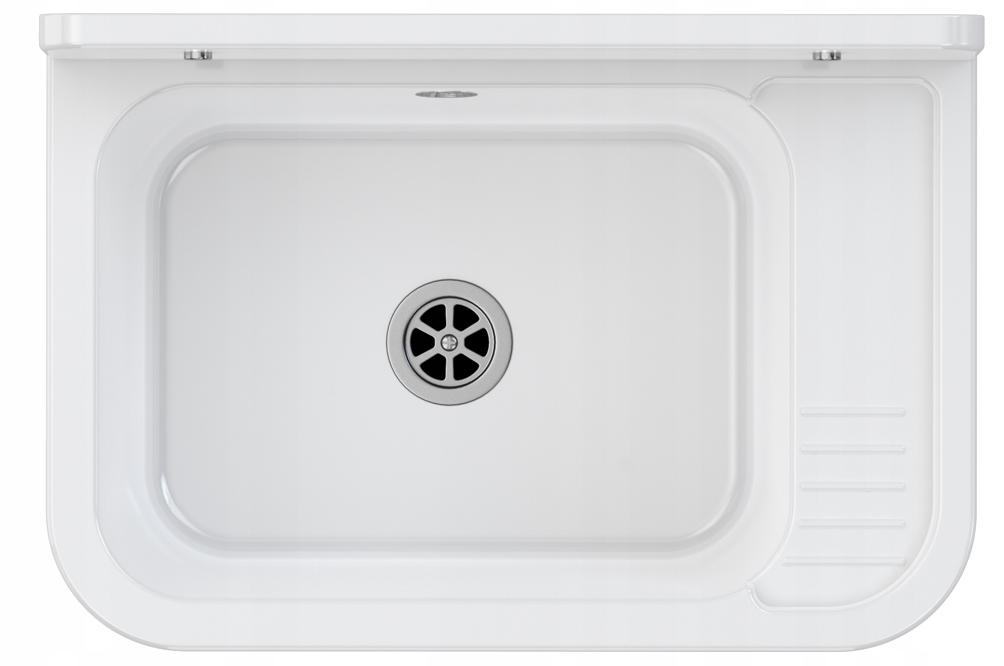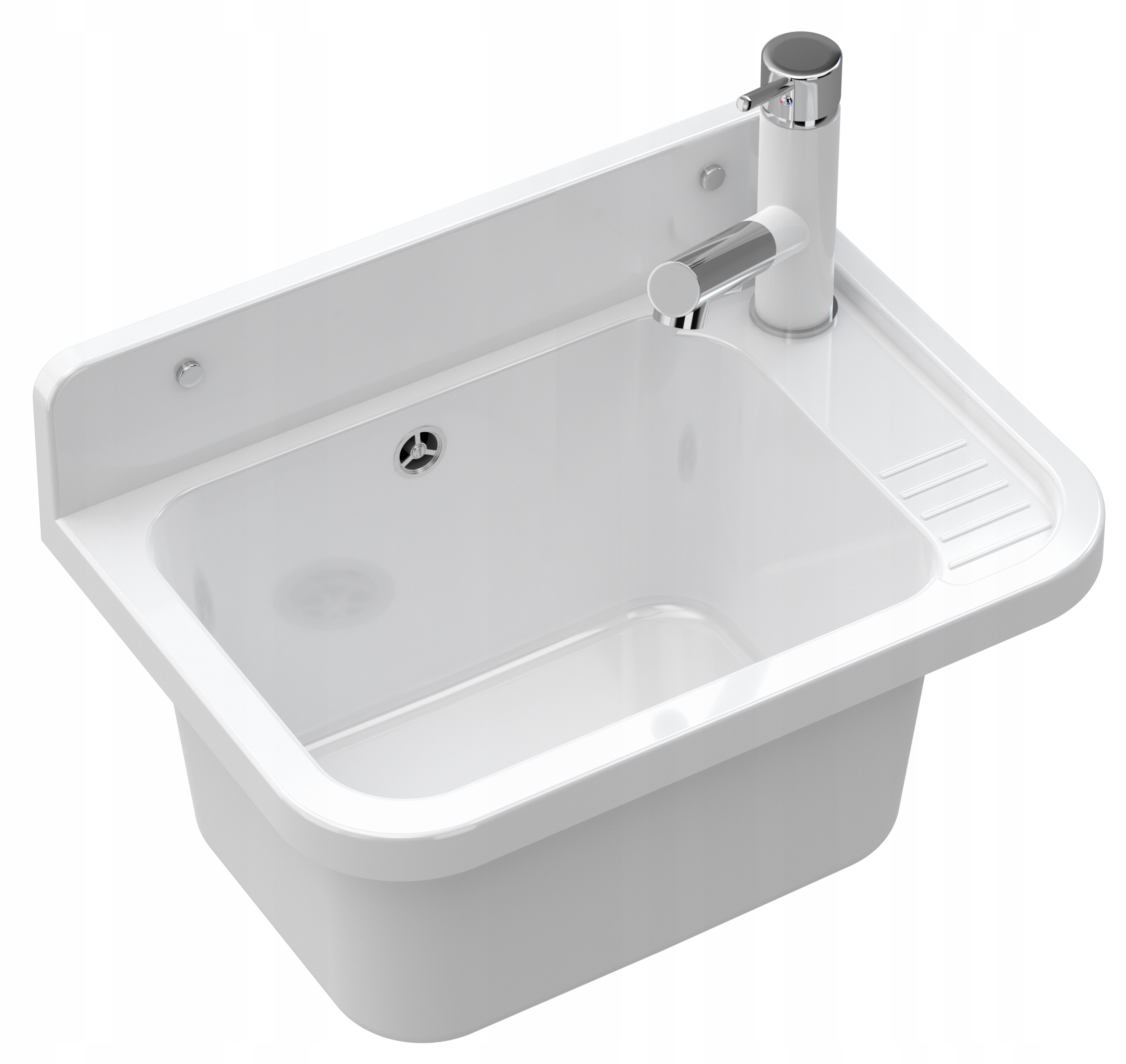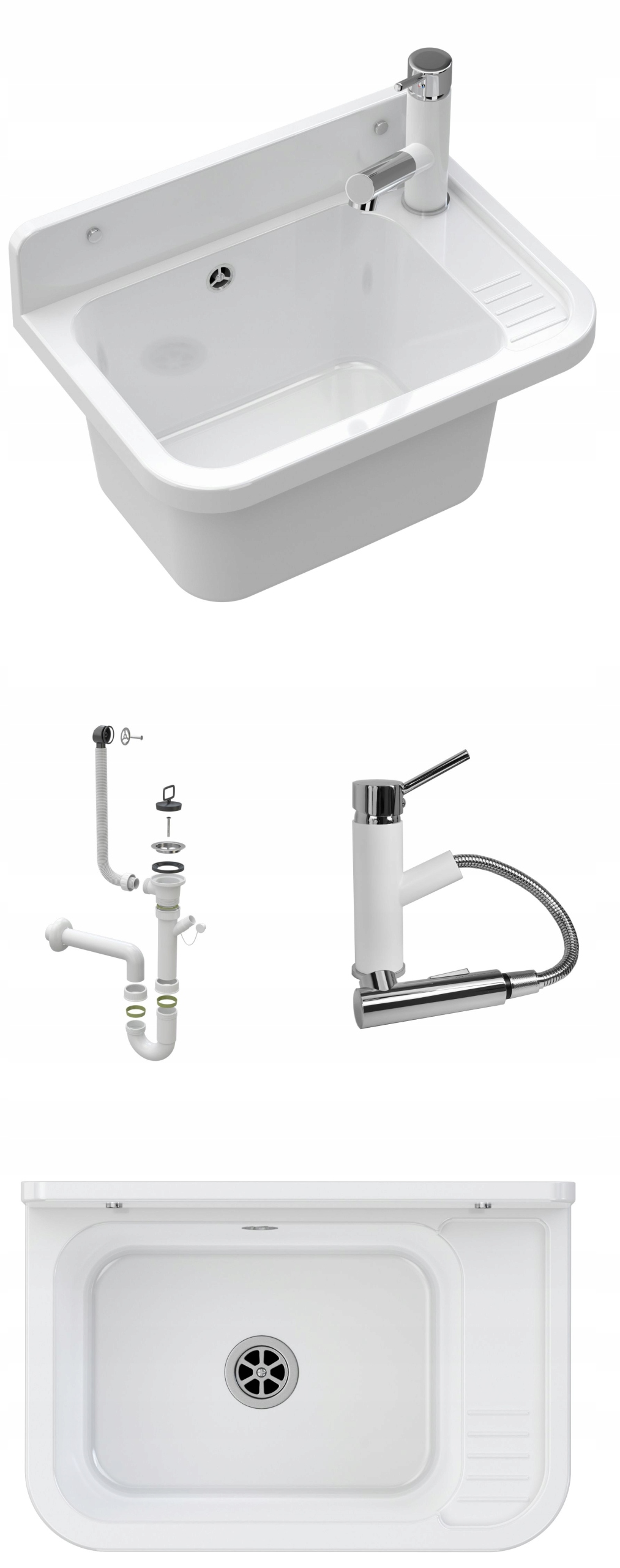 - Zlew gospodarczy wykonany z polipropylenu, odpornego na uszkodzenia i wysokie temperatury