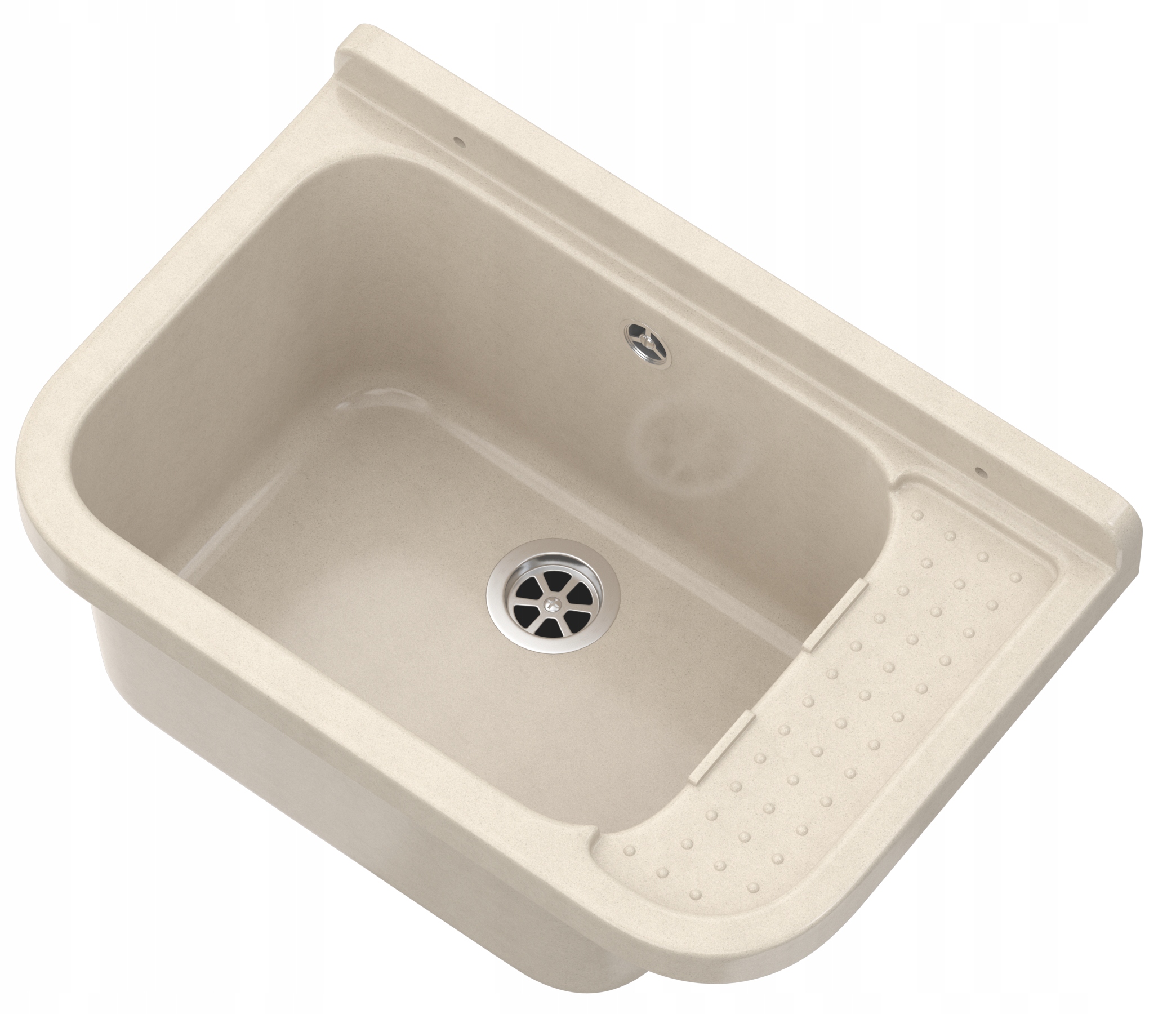 Zlew gospodarczy z baterią i syfonem to praktyczne rozwiązanie, które idealnie sprawdzi się w różnego rodzaju pomieszczeniach takich jak pralnia, garaż, kotłownia czy warsztat. Zestaw w atrakcyjnym beżowym kolorze pozwala na łatwe dopasowanie do różnego stylu wnętrz, jednocześnie zapewniając solidność, trwałość oraz funkcjonalność. Dzięki użytym materiałom i starannemu wykonaniu, produkt jest odporny na uszkodzenia, wysokie temperatury oraz działanie środków chemicznych. Komplet zawiera wszystkie niezbędne elementy do montażu, co czyni proces instalacji szybkim i łatwym.