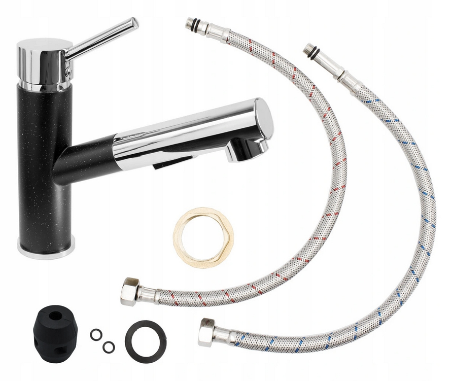 Zestaw zawiera wszystkie niezbędne elementy do montażu, co pozwala uniknąć dodatkowych kosztów i znacznie przyspiesza proces instalacji. Dodatkowe funkcjonalności, takie jak syfon z wyjściem na pralkę lub zmywarkę oraz dołączony spray do czyszczenia, jeszcze bardziej zwiększają wygodę użytkowania. Precyzyjnie zaprojektowana bateria z wyciąganą wylewką i dwoma rodzajami strumienia wody to praktyczny dodatek, który ułatwia codzienną pracę przy zlewie.
