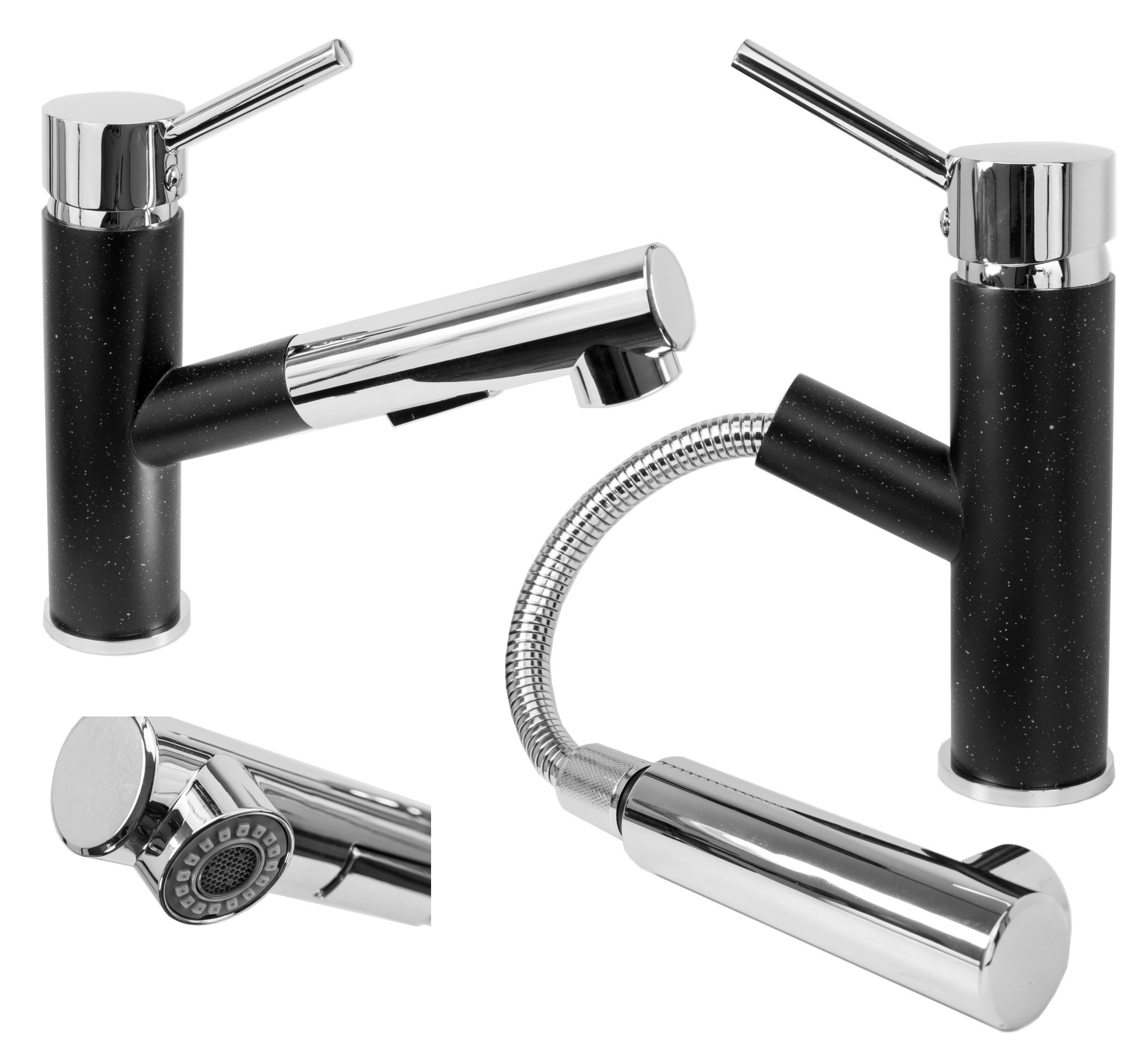 • Bateria: wyciągana wylewka, ceramiczna głowica, dwa tryby strumienia wody.