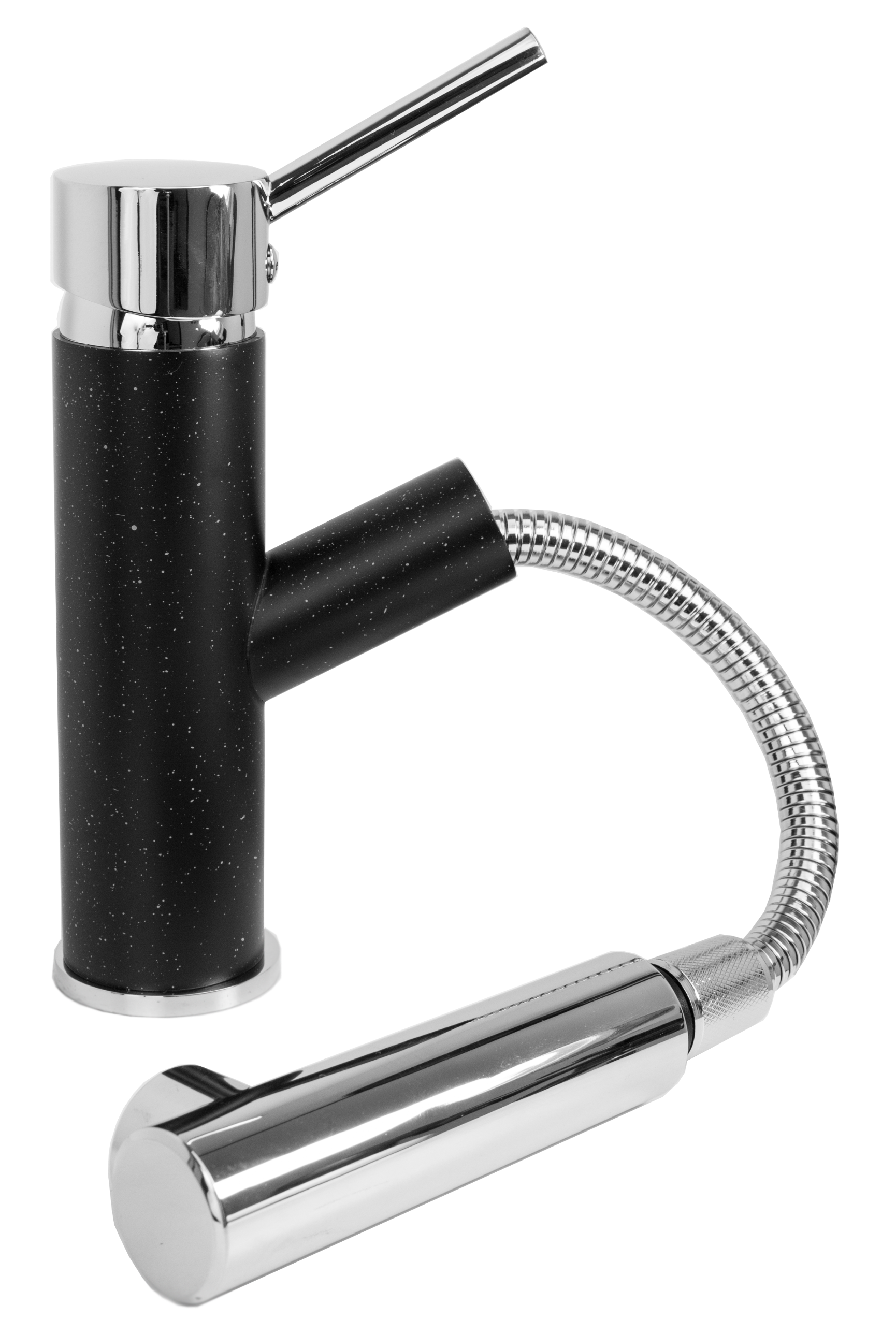 • Bateria z ceramiczną głowicą, perlatorem i wyciąganą wylewką.