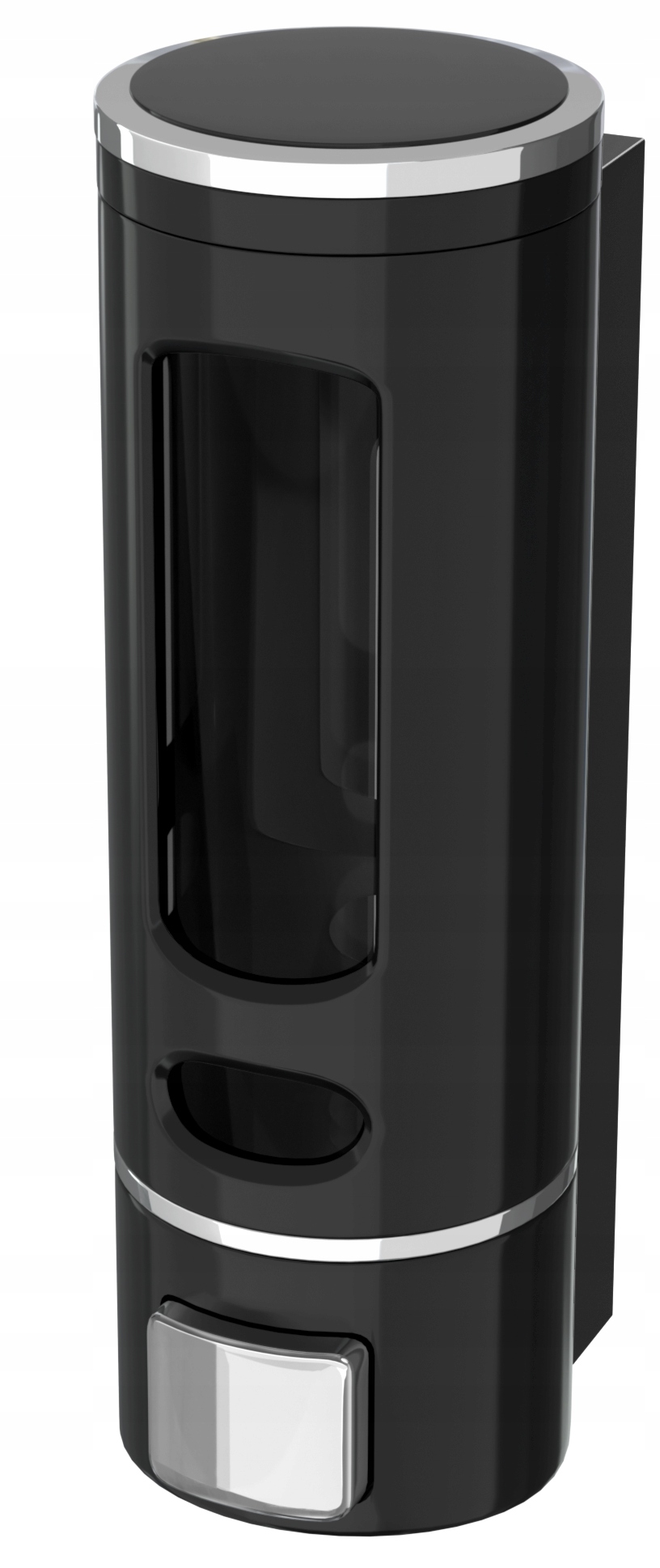 - Dozownik ścienny wykonany z tworzywa PVC i elementów chromowanych.