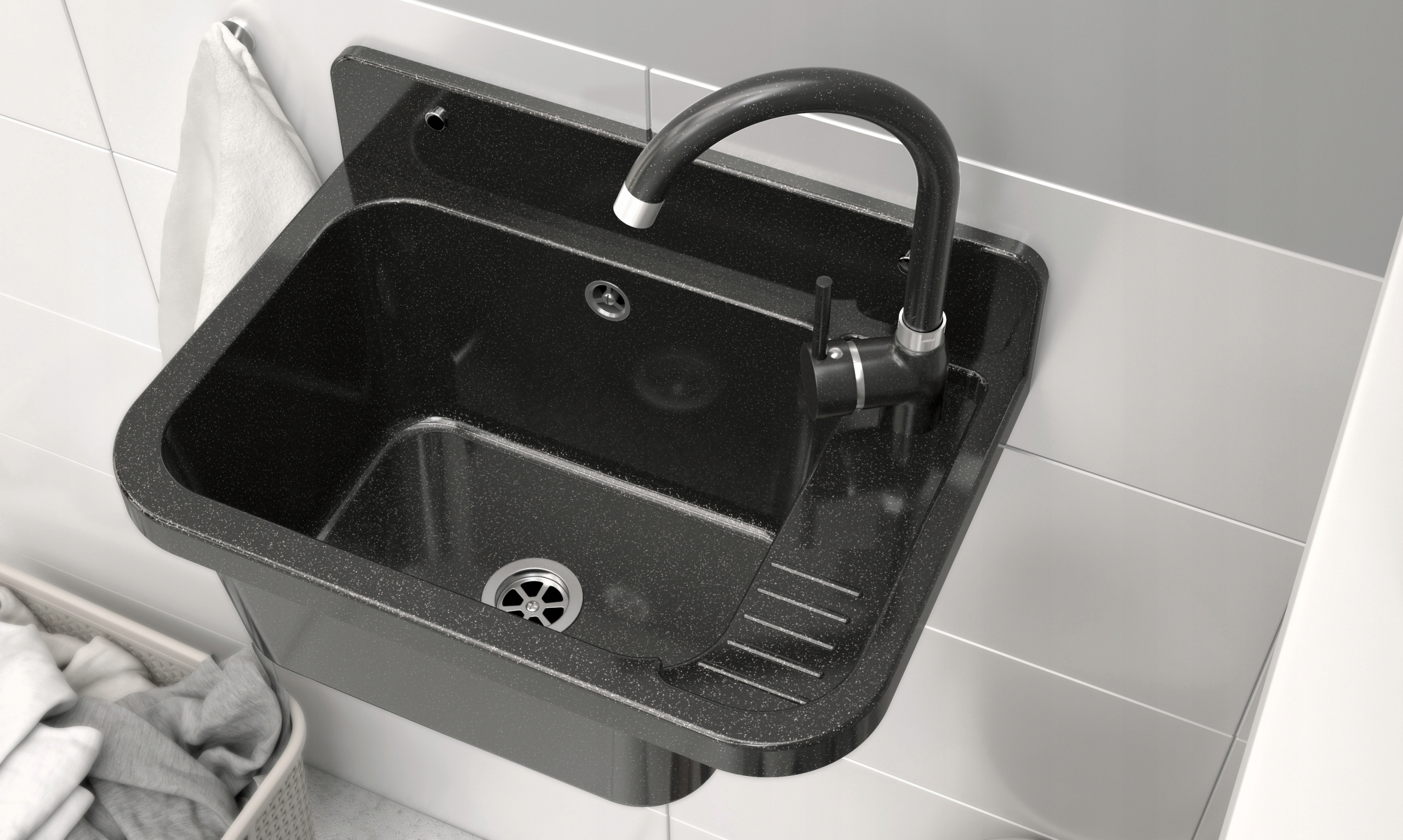 Zlew gospodarczy Paron w czarnym kolorze to produkt, który łączy w sobie trwałość, estetykę oraz praktyczność. Materiał komory – polipropylen – gwarantuje wytrzymałość na uszkodzenia mechaniczne, działanie substancji chemicznych oraz brak absorpcji wody. Dzięki temu doskonale nadaje się do intensywnego użytkowania w różnych środowiskach, zarówno w pomieszczeniach, jak i na zewnątrz.